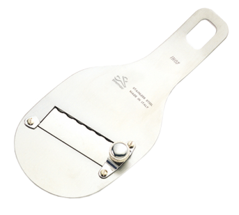 Truffle Slicer, adjustable thickness wheel, hanging hole, 18/10 stainless steel