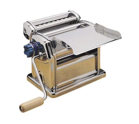 Imperia R220 Pasta Machine, 13"L x 8-1/2"W x 10"H, manual, approximately 26-1/2 lbs. per hour, 8-5/8" rolling mill cylinder, max. 3/8" dough thickness, 10 position adjustable knob, without cylinder, clamp includes, drilled and tempered steel