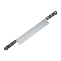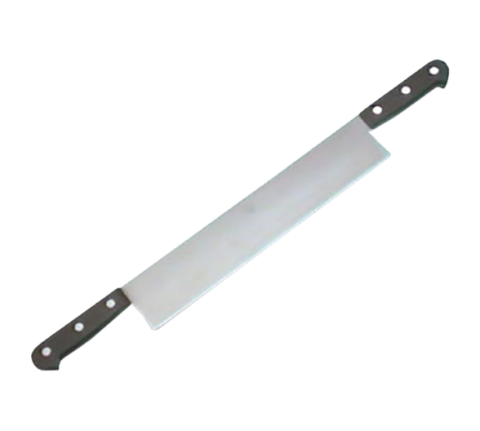 Cheese Knife, 15-3/4" blade length, 25" total length, non-flexible, two riveted wooden handles, stainless steel
