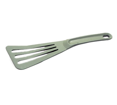 Exoglass® Pelton Spatula, 12"L x 3-1/2" wide top, slotted, heat resistant up to 430°F, one-piece construction, flexible blade, non-porous, non-stick surface, will not scratch, dishwasher safe, composite material, gray, made in France, AFNOR NF Certification