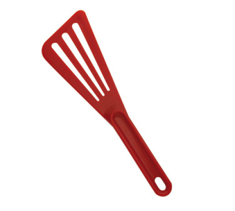 Exoglass® Pelton Spatula, 12"L x 3-1/2" wide top, slotted, heat resistant up to 430°F, one-piece construction, flexible blade, non-porous, non-stick surface, will not scratch, dishwasher safe, red, made in France, AFNOR NF Certification