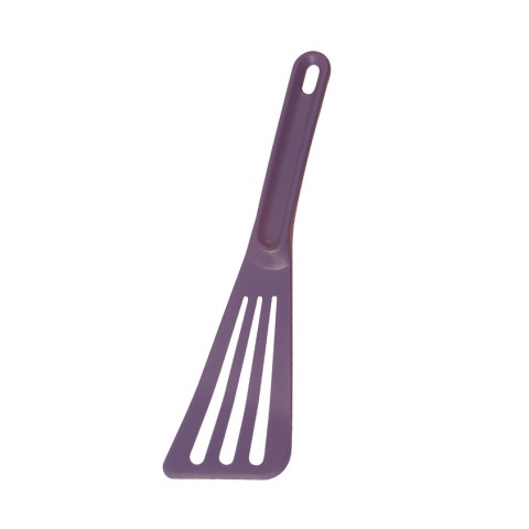 Exoglass® Pelton Spatula, 12"L x 3-1/2" wide top, slotted, heat resistant up to 430°F, one-piece construction, flexible blade, non-porous, non-stick surface, will not scratch, dishwasher safe, composite material, purple, made in France, AFNOR NF Certification