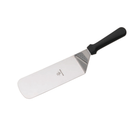 Bent Turner, 7-7/8"L, plain, rounded edges, semi-flexible, black polypropylene molded handle, dishwasher safe, stainless steel