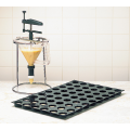 Portion Control Funnel, 16-1/2"H x 10"W x 8-5/8" dia., 1-1/2 quart capacity, automatic, portion calibrated up to 2/3 oz., resists temps. up to 250°F, includes chrome stand, dishwasher safe, polycarbonate, made in France