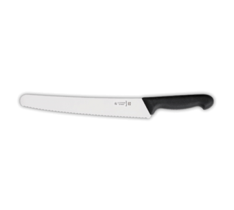 Giesser Messer Universal/Bread Knife, 9-3/4" blade length, non-slip comfort grip, non-porous, black thermoplastic elastomer handle, chrome-molybdenum steel blade, made in Germany
