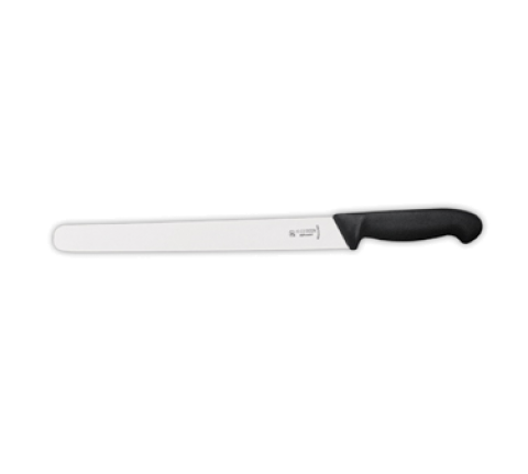 Giesser Messer Ham Knife, 14" blade length, serrated, non-slip comfort grip, non-porous, black thermoplastic elastomer handle, chrome-molybdenum steel blade, made in Germany