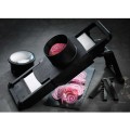 Mandoline 2000S, 15-1/2"L x 5-1/4"W, with (2) pushers, straight and serrated edge, 3 julienne blades 1/8", 3/16" or 3/8" thickness, stainless steel guiding plate and blades, heat resistant, with safety guard, non-porous composite material, made in France