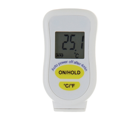 Thermocouple Thermometer, electronic, "K" type, 1-2/3"W x 3-1/6"L, temperature range: -67°C - 1400°C (-88°F - 2552°F) accuracy: ±0.8°C (1.44°F), resolution: 0.1°C/1°C above 200°C (0.18°F/1.8°F above 392°F, on/hold button, IP65 waterproof case, flat CR2032, 3v batteries (included) (blister pack) (Sensor not included)