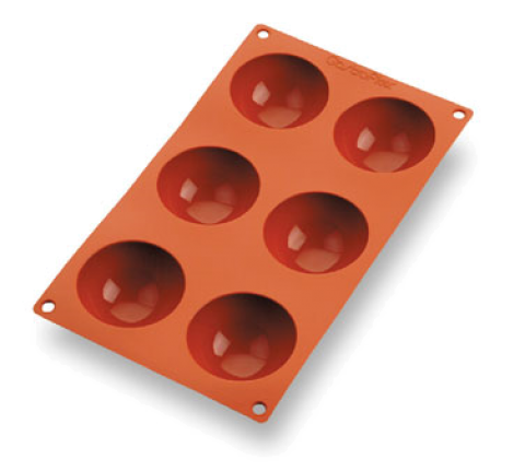 Gastroflex® Half Sphere Mold, 6 per sheet, 2-3/4" dia. x 1-3/8"H half-spheres, sheet size 11-3/16”L x 6-7/8”W, flexible, freezer to oven, temp resistance from -58°F to 482°F, dishwasher safe, food grade silicone, made in France