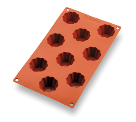 Gastroflex® Brioche Mold, 9 per sheet, 2-1/16" dia. x 1-3/16"H brioches, sheet size 11-3/16”L x 6-7/8”W, flexible, freezer to oven, temp resistance from -58°F to 482°F, dishwasher safe, food grade silicone, made in France