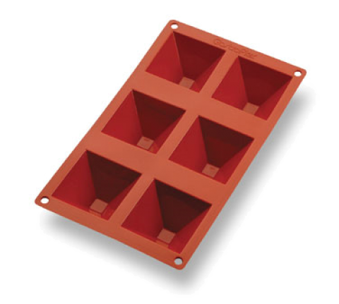 Gastroflex® Pyramid Mold, 6 per sheet, 2-3/4"L x 2-3/4"W x 1-1/2"H pyramids, sheet size 11-3/16”L x 6-7/8”W, flexible, freezer to oven, temp resistance from -58°F to 482°F, dishwasher safe, food grade silicone, made in France
