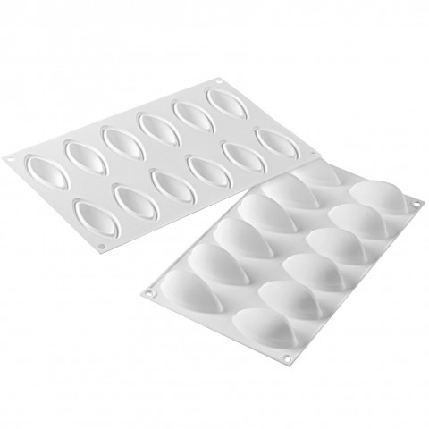 Silikomart® 3D Mold, "Quenelle 24", 11-3/4"L x 7"W, makes (12) 2-1/2"L x 1-1/6"W x 1-1/10"H quenelles, flexible, non-stick, silicone, white, Made in Italy