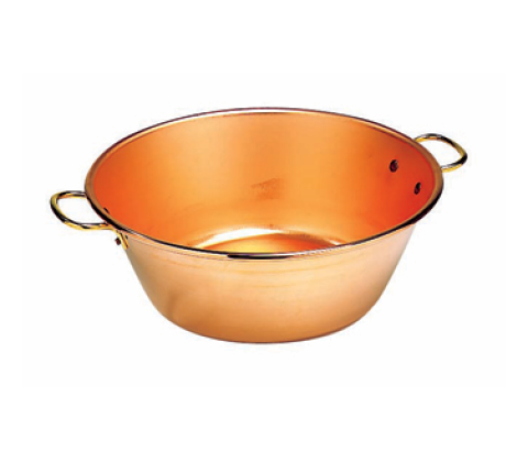 Jam Pan, 10 quarts, 15" dia. x 5"H, round, solid copper, with reinforced rolled edge, riveted brass handles