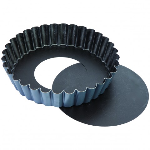 Exopan® Sponge Cake Mold, 6-1/3" dia. x 1-1/16"H, round, fluted, removable bottom, non-stick coating inside, protective enamel outside, steel, made in France