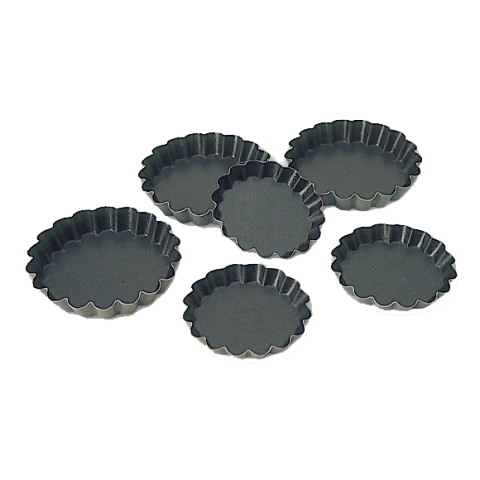 Exopan® Tartlet Mold, 3-1/2" dia. x 5/8"H, round, fluted, non-stick coating inside, protective enamel outside, steel, made in France (pack of 12)