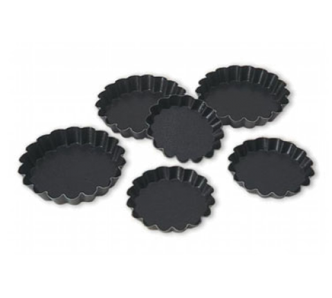 Exopan® Quiche Mold, 4-3/8" dia. x 3/4"H, round fluted, non-stick coating inside, protective enamel outside, steel, made in France (pack of 12)