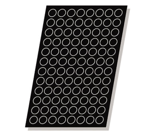 Flexipan® Pomponnette Mold, 96 per sheet, 1/4 oz. cap., 1-1/2" dia. x 5/8"H, sheet size: 23-3/4"L x 15-3/4"W, non-stick, withstands temperatures from -40°F to +580°F, flexible, reusable 2,000 to 3,000 times, food grade silicone, NSF, made in France