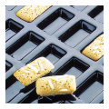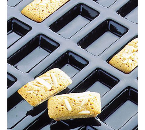 Flexipan® Financiers Mold, 24 per sheet, 2 oz. cap., 3-1/2"L x 1-7/8"W x 1/2"H, sheet size: 23-3/4"L x 15-3/4"W, non-stick, withstands temperatures from -40°F to +580°F, flexible, reusable 2,000 to 3,000 times, food grade silicone, NSF, made in France