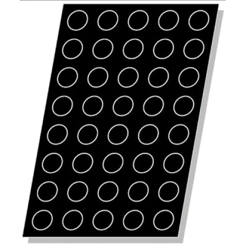 Flexipan® Mini-Cylinders Mold, 54 per sheet, 3/4 oz. cap., 1-1/2" dia. x 3/4"H, sheet size: 23-3/4"L x 15-3/4"W, non-stick, withstands temperatures from -40°F to +580°F, flexible, reusable 2,000 to 3,000 times, food grade silicone, NSF, made in France