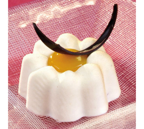 Flexipan® Bavarois Mold, 18 per sheet, 3-3/8 oz. capacity, 3" dia. x 1-3/8"H, sheet size: 23-3/4"L x 15-3/4"W, non-stick, withstands temperatures from -40°F to +580°F, flexible, reusable 2,000 to 3,000 times, food grade silicone, NSF, made in France