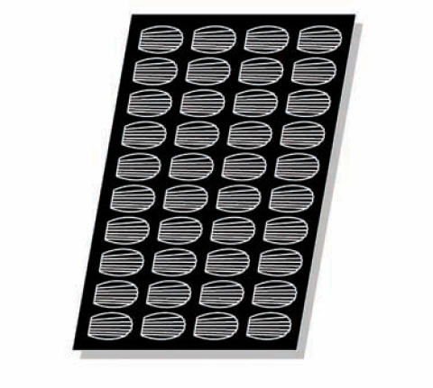 Flexipan® Mini Madeleines Mold, 56 per sheet, 1/2 oz. cap., 2" dia. x 1-1/2"H, sheet size: 23-3/4"L x 15-3/4"W, non-stick, withstands temperatures from -40°F to +580°F, flexible, reusable 2,000 to 3,000 times, food grade silicone, NSF, made in France