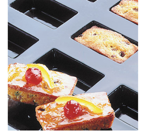 Flexipan® Rectangular Cake Mold, 24 per sheet, 1-7/8 oz. cap., 3-1/6"L x 1-1/6"W, x 1-1/6"H, sheet size: 23-3/4"L x 15-3/4"W, non-stick, withstands temperatures from -40°F to +580°F, flexible, reusable 2,000 to 3,000 times, food grade silicone, NSF, made in France