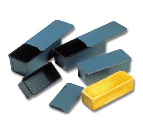 Exopan® Bread Mold, 1 lb. capacity 9-3/4"L x 3-1/2"W x 3-1/4"H, with sliding lid, non-stick coating inside and protective enamel outside, heat distributing copper wire rolled edge, fine steel, made in France