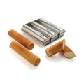 Triple Bread Mold, 11-3/4"L x 1-3/4" dia., round, 3 molds attached in 2 pieces with clamp closures, heavy duty stainless steel
