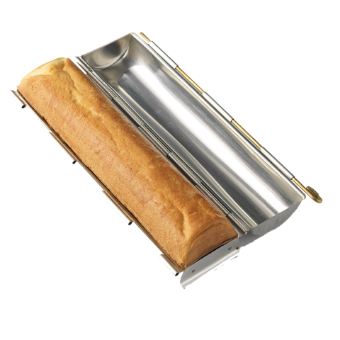 Bread Pan, 11-3/4"L x 2-3/4" dia., round, clip opening/closing capability, stainless steel