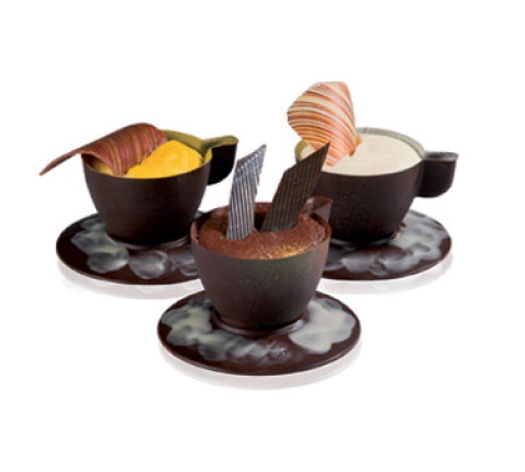 Chocolate Mold, 12 oz., 2-1/6" dia. x 1-5/12"H, 7 espresso cup design, to be used with 380254, refrigerator to freezer safe, polycarbonate