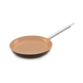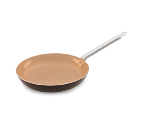 Elite Fry Pan, 9-1/2" dia., non-stick, riveted stainless steel handle, hanging handle loop, lacquered exterior, ceramic coating, (PTFE Free), suitable for gas, electric, ceramic, halogen, and induction hobs, (made in France)