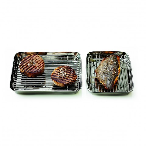 Tray, 8-1/16"L x 5-7/8"W x 1-1/8"H, with grid, stainless steel