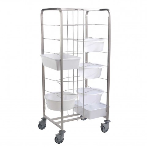 Dough Container Trolley, 31"L x 23-1/4"W x 70-1/2"W, (16) container capacity, (4) casters (2) with brakes, 7-1/4" rack spacing, stainless steel
