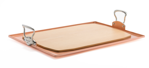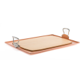 Serving Platter, 23-3/5"W x 15-7/10"D copper with handle, 21-1/5"W x 13-2/5"D wook