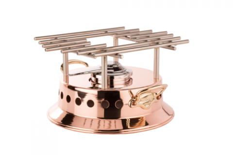 Heater, 8-3/5" dia. x 6-1/2"H, with alcohol burner, grill, copper body, bronze handle