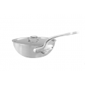 M'Urban3 Saute Pan, 3.3 qt. (3.1 liter), 9-1/2" dia. x 3-3/20"H, round, with lid, curved splayed, riveted cast stainless steel handle, non-corrosive, gas/electric/halogen/induction/oven, 3-ply contruction, stainless steel brushed finish