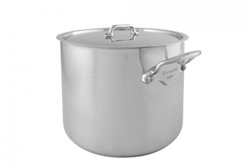M'Urban3 Stockpot, 27.1 qt. (25.7 liter), 12-1/2" dia. x 12-1/2"H, round, with lid, riveted cast stainless steel handle, non-corrosive, gas/electric/halogen/induction/oven, 3-ply contruction, stainless steel brushed finish