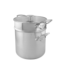 M'Urban3 Stockpot, 9.9 qt. (9.5 liter), 9-1/2" dia. x 9"H, round, steamer insert, with glass lid, riveted cast stainless steel handle, non-corrosive, gas/electric/halogen/induction/oven, 3-ply contruction, stainless steel brushed finish
