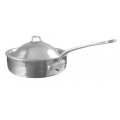 M'Elite Sauté Pan, 3.1 qt. (3 liter), 9-1/2" dia. x 3"H, round, with dome lid, non-drip edge, riveted cast stainless steel stay cool handle, gas/electric/halogen/induction/oven/dishwasher safe, 2.6 mm multi-ply 18/10 stainless steel, hammered & polished finish
