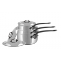 M'Cook CI Sauce Pan, includes (3) sauce pans: 6-3/10" dia. x 3-1/2"H, 7" dia. x 4"H, 8" dia. x 4-3/10"H, round, with lid, non-drip edge, riveted cast iron stay cool handle, non-corrosive, oven safe to 680° F, gas/electric/halogen/induction/oven, 5-ply 18/10 stainless steel, polished finish