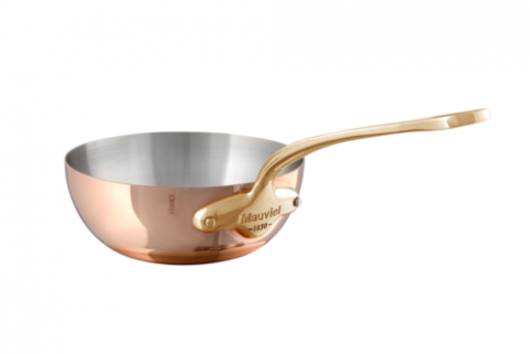 M'150b Saute Pan, 2 qt. (1.9 liter), 8" dia., round, without lid, curved splayed, straight edge, riveted bronze handle, bronze handle, gas/electric/halogen/oven safe, 1.5mm, 18/10 stainless steel interior, bi-laminated copper exterior, polished finish