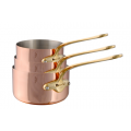 M'150b Sauce Pan Set, without lid, includes (3) sauce pans: 6-3/10" dia., 7" dia., 8" dia., straight edge, riveted bronze handle, gas/electric/halogen/oven safe, 18/10 stainless steel interior, bi-laminated copper exterior, polished finish