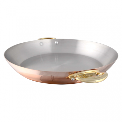 M'150b Paella Pan, 4.1 qt. (3.9 liter), 13-7/10" dia. (35cm), riveted bronze handle, gas/electric/halogen/oven safe, 1.5mm, 18/10 stainless steel interior, bi-laminated copper exterior, polished finish