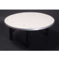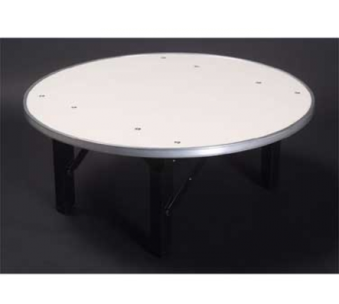 Original Table Riser, round top, single-deck, 1/16” expanded white vinyl sheet bonded on 5/8" plywood top, channel aluminum edge 30" dia., 12" high, metal glide caps std.