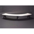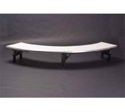 Original Table Riser, 4 to circle crescent top, single-deck, 1/16” expanded white vinyl sheet bonded on 5/8" plywood top, channel aluminum edge 48" radius, 15" wide, 12" high, metal glide caps std.