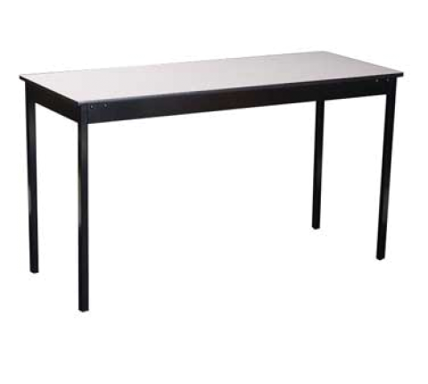 Laundry Table, plastic laminated 5/8" plywood top with black vinyl flush (VFE) edge, 3" aluminum alloy apron, 16 gauge 1-1/8" square powder coated steel tube legs, 48" long, 30" wide, 34" high, black plastic glides