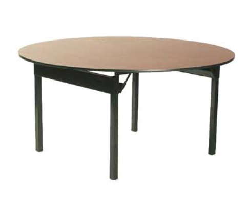 Original Folding Table, round top, plastic laminated 5/8" plywood top (edge to be specified), black powder coated chassis, individual single leg folding action, 30" dia., 30" high, metal glide caps std.
