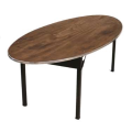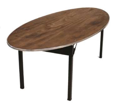 Original Folding Table, oval top, 5/8" plywood top (edge to be specified), black powder coated chassis, 72" long, 60" wide, 30" high, metal glide caps std.
