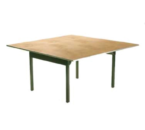 Original Folding Table, square top, 5/8" plywood top (edge to be specified), black powder coated chassis, 66" long, 66" wide, 30" high, metal glide caps std.