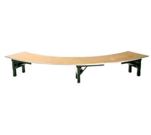 Original Table Riser, 4 to circle crescent top, single-deck, 5/8" plywood top (edge to be specified), 96" radius, 15" wide, 12" high, metal glide caps std.